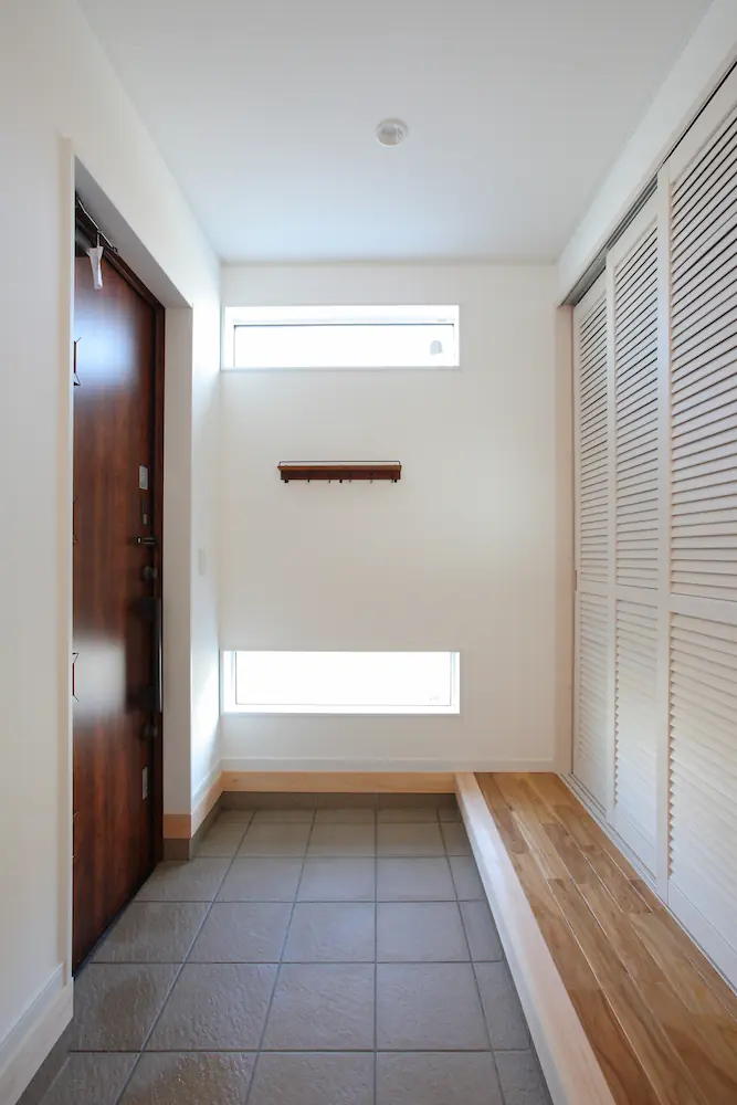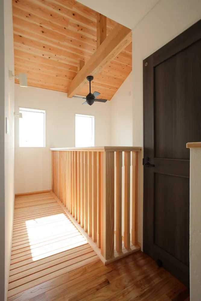 玄関や階段ホールには採光窓を多く配置し、家中がやわらかな光に包まれる工夫が施されています。
