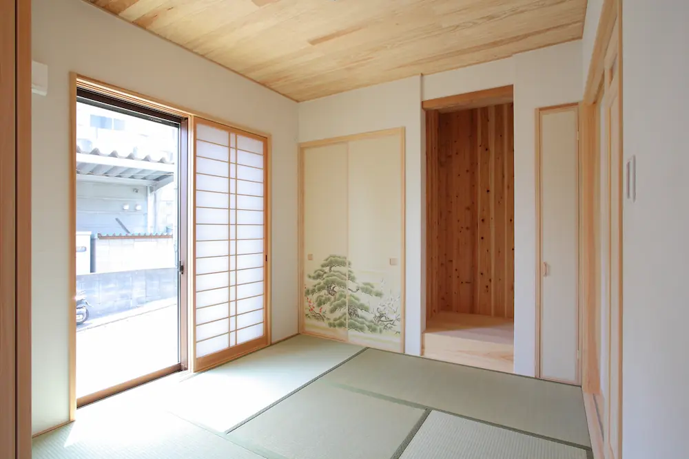 LDKは光がたっぷり入り、家族が自然と集まる明るい空間に。和室は障子や襖絵がやさしく調和し、落ち着いた雰囲気を演出しています。