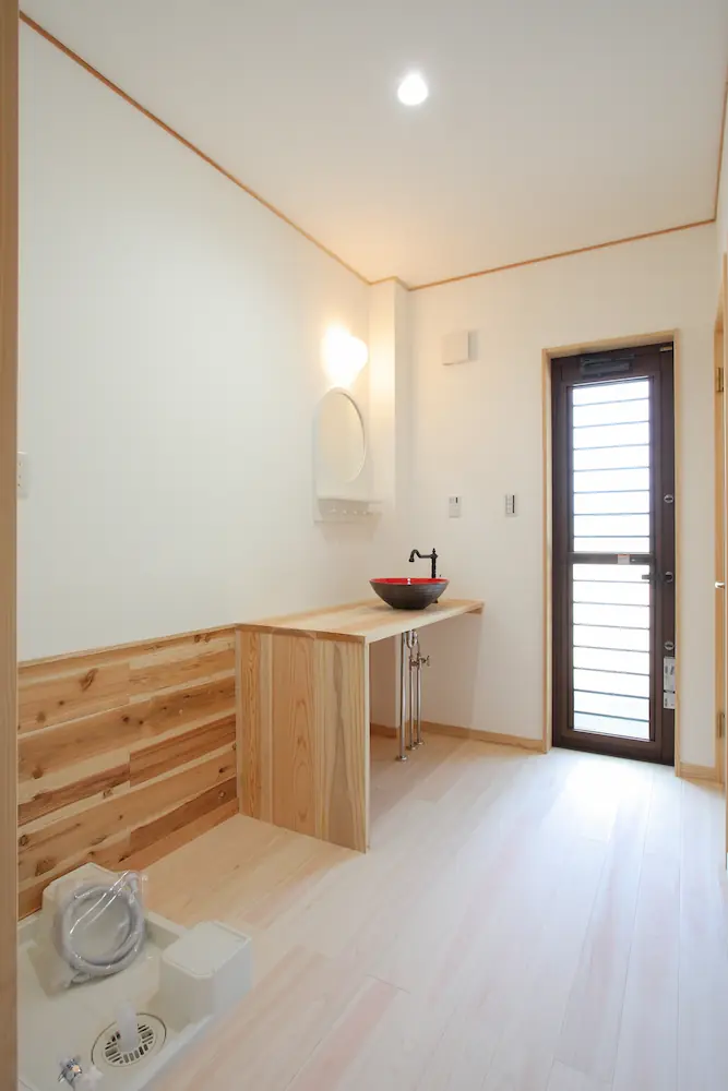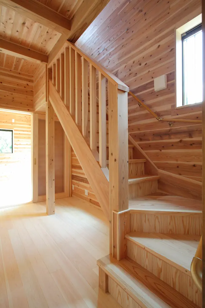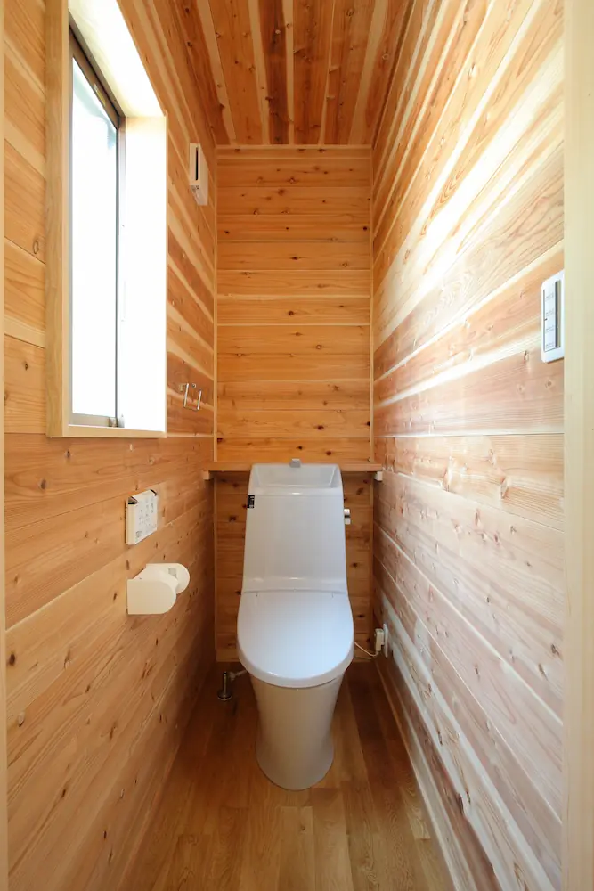 階段まわりやトイレなどの細部まで自然素材で統一し、暮らしの中で「木に触れる心地よさ」を感じられる家になりました。